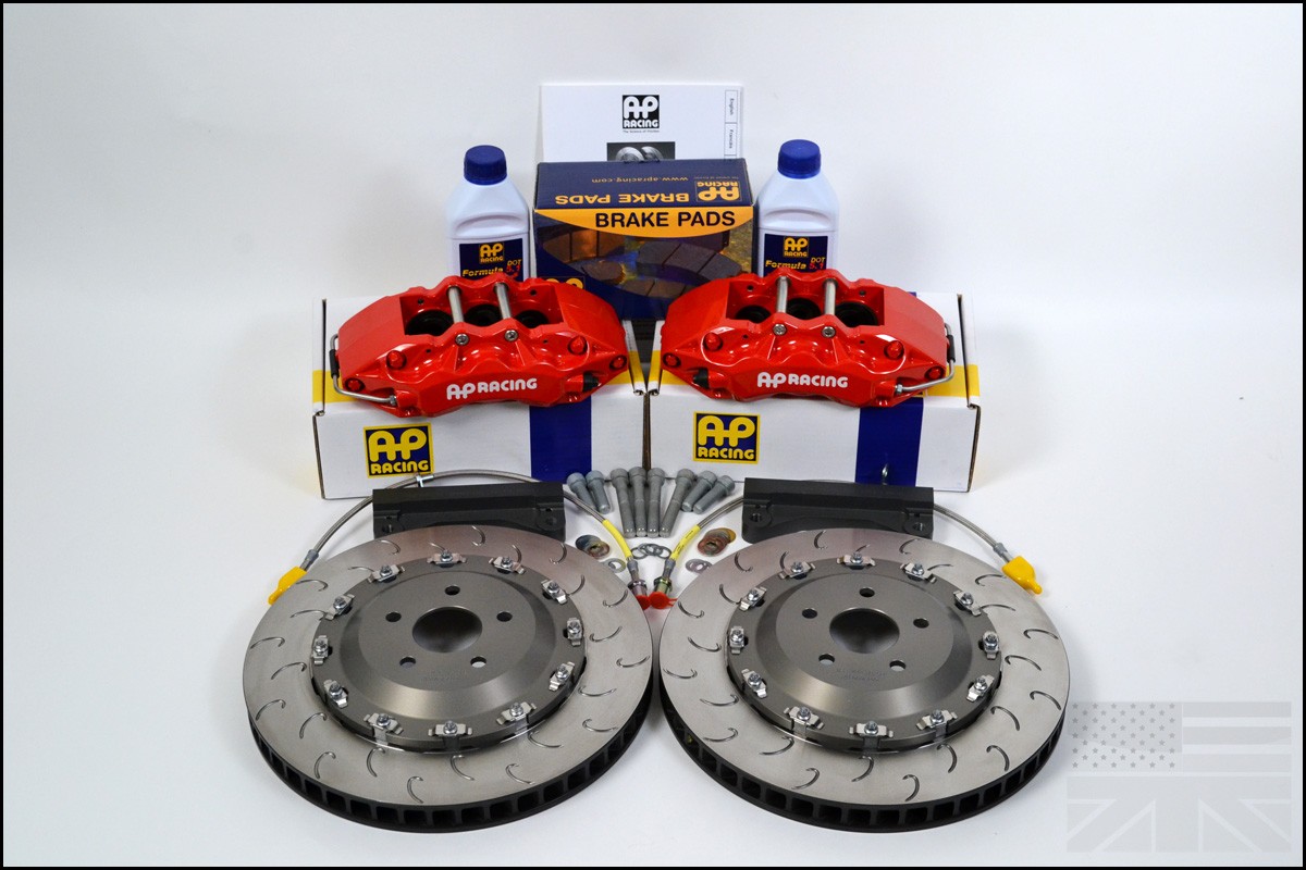 AP Racing 4-Kolben Bremsanlage Vorne - Die OEM Bremsanlage ausgezeichnet, aber nur für 200PS ausgelegt. Laut TÜV sind 275PS die maximale Leistung, die ohne ein Bremsenupgrade zulässig (und sicher) sind. Wenn die Leistung nun erhöht wird, empfehlen wir ebenfalls die Bremsanlage zu überarbeiten. AP bietet ein 4-Kolben-System an, dass Durchmesser/Dicke von 295/24mm auf 343/26mm erhöht. Die Bremsscheiben sind nun ebenfalls geschlitzt.